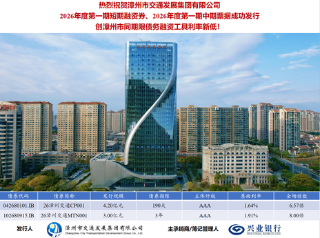 • 2026-03-31漳州交通集團(tuán)成功發(fā)行7.2億元債務(wù)融資工具,票面利率創(chuàng)新低